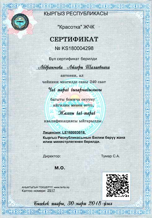 Школа работает по Лицензии Министерства Образования № KS 180004298