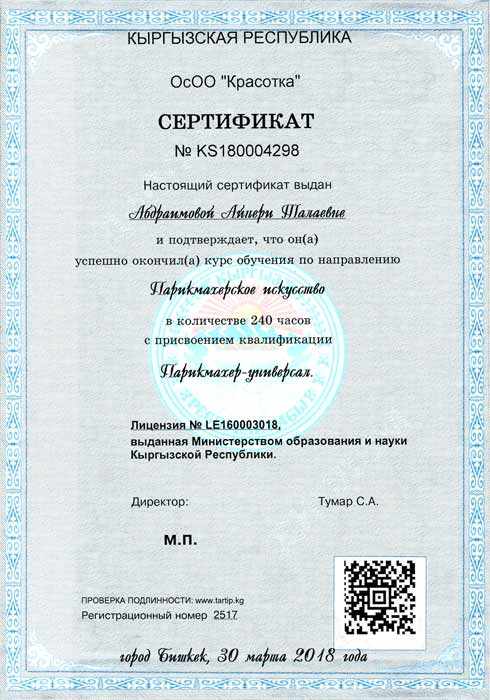 Школа работает по Лицензии Министерства Образования № KS 180004298.
